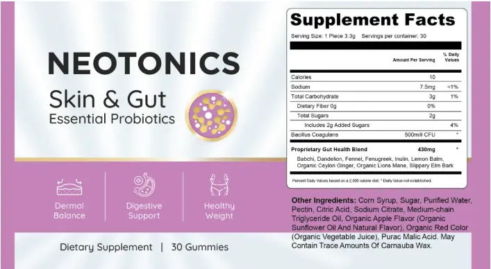 Neotonics is a breakthrough supplement that tackles the root cause of premature skin aging by targeting gut health — where it all begins. As the first formula of its kind, Neotonics combines 500 million units of high-potency probiotics with 9 powerful natural ingredients, all clinically tested to support glowing skin and optimized digestion.